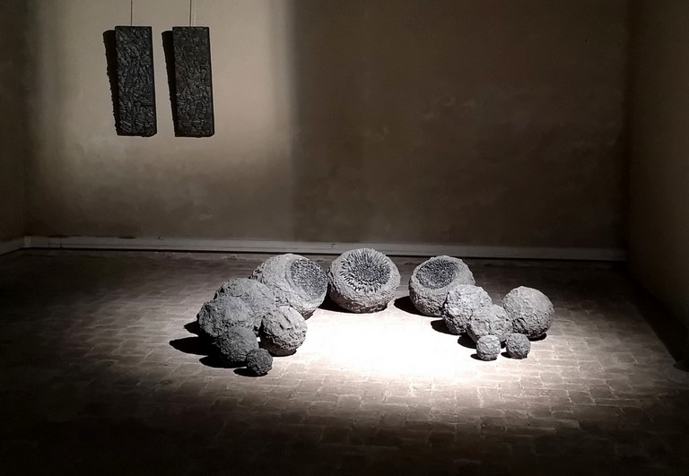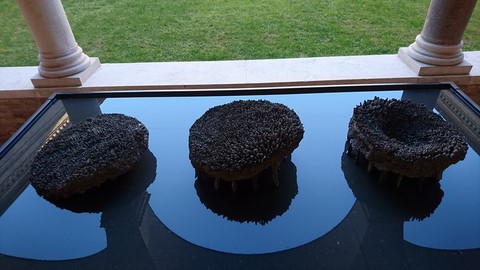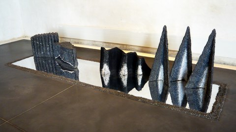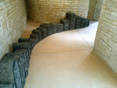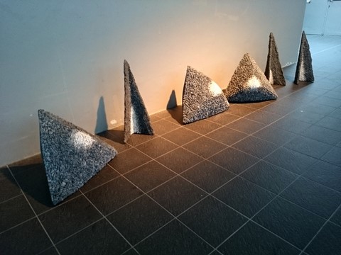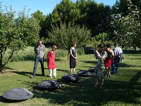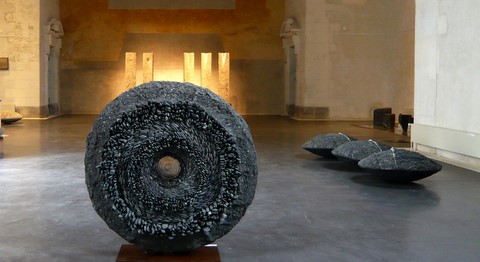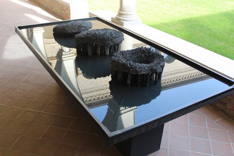 2012 - ciment, galets, pâte de verre en moule perdu - Ø 90 x 15 cm - Musée TAMO