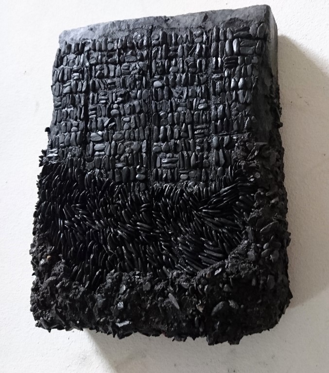 25 x 15 x 3 cm, ciment, galets, schiste