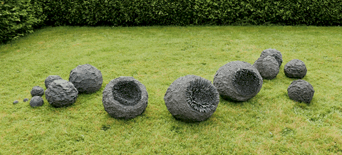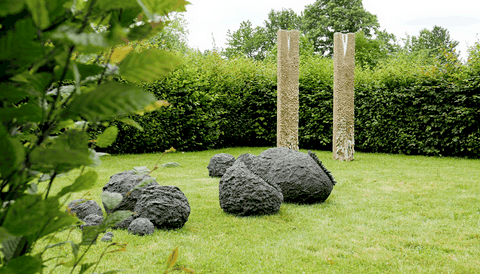 Installation de deux éléments de Ø85 x 40 cm - Ciment, galets